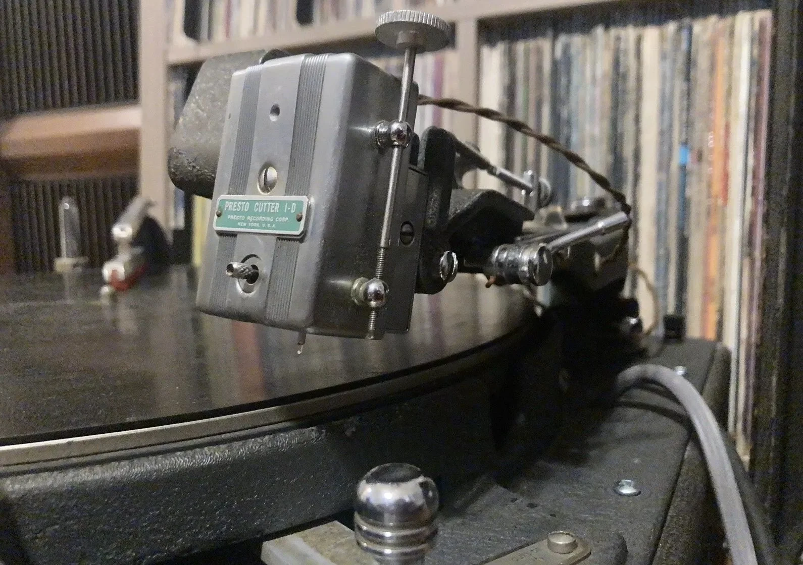 Every record is unique! Our records are cut individually, by hand in real time. We use 80s Japanese lathes (Atom A-101, Vanrock E-101) and pre-stereo Presto lathes (K8, R13A); All digital audio is summed to mono during cutting/embossing to produce a characteristically warm sound. We cut with diamond and emboss with sapphire styli on a variety of materials including PETG, Polycarbonate and PVC.